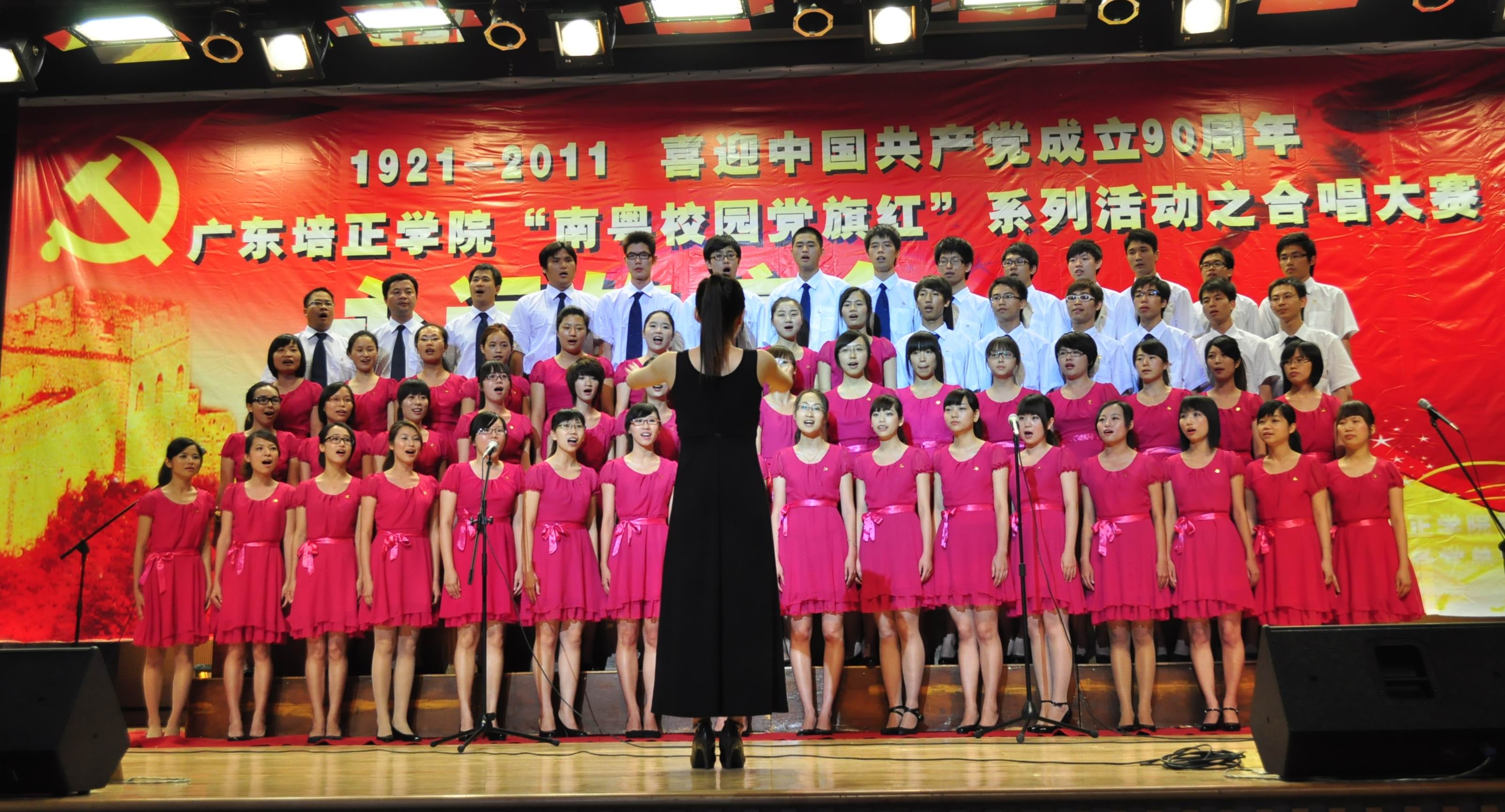 在比赛中,我系合唱队围绕“南粤校园党旗红”这一主题,先后演唱了《党啊,亲爱的妈妈》、《南泥湾》两首红色经典歌曲。党员和师生们精神饱满,热情高昂,用嘹亮的歌声尽情讴歌中国共产党建党90年来的丰功伟绩,重温党的光辉历程,歌颂党的伟大成就,表达对党的忠诚。