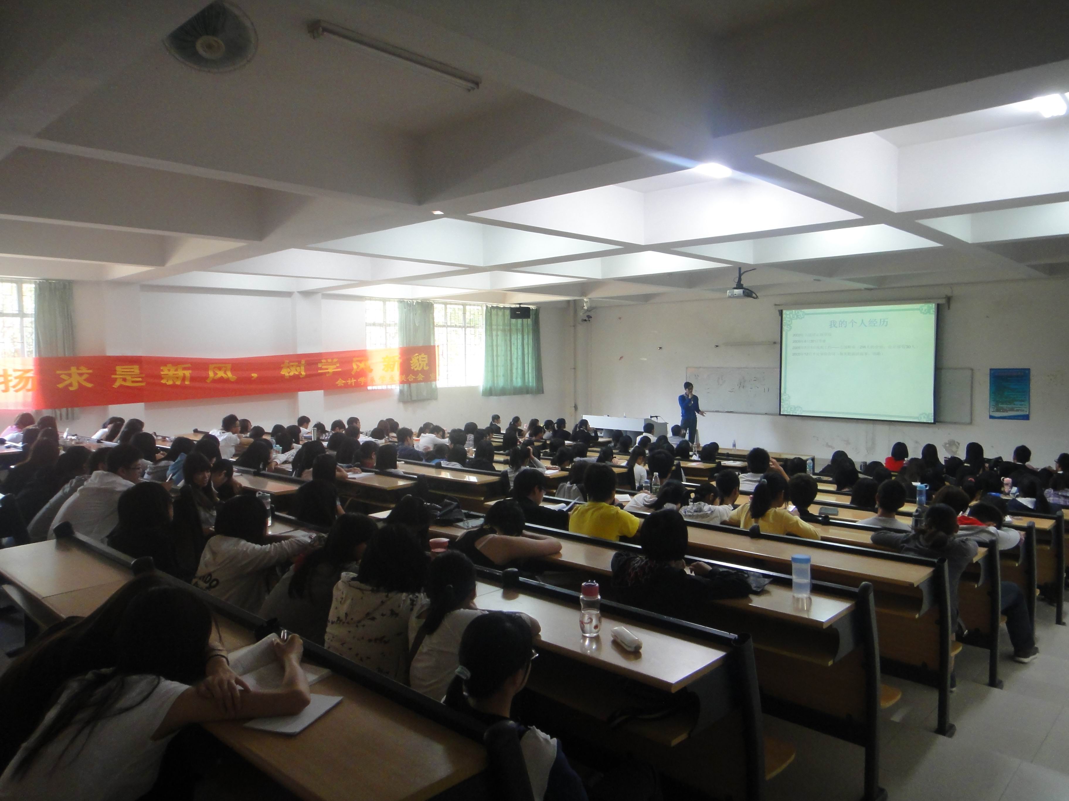 为做好我系校友会工作,促进校友与我系的交流联系,同时配合学院学风建设,2011年10月18日下午,广东培正学院会计学系第一届“校友论坛”在 4115教室举行。论坛由会计学系党总支书记、系办公室主任陈双红主持,他简单介绍了主讲人培正校友—2002级会计学专业学生汤运乾的个人在校和毕业后的情况。
