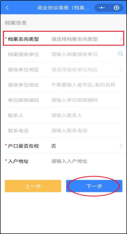 (1) ★档案去向类型:指毕业后档案去向的类型,在签约前尽量和单位沟通清楚档案及户口去向等信息,如果确实无法确认,可先选择转递回生源地(后期拿到调档函后再另外填报)。