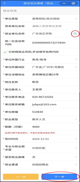 (4)★统一社会信用代码:填写签约单位统一社会信用代码,必须与就业单位名称一致,如系统无法自动带出,须与签约单位确认或自行查询后手动输入;