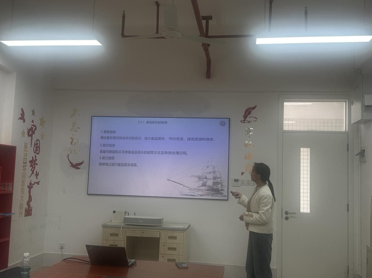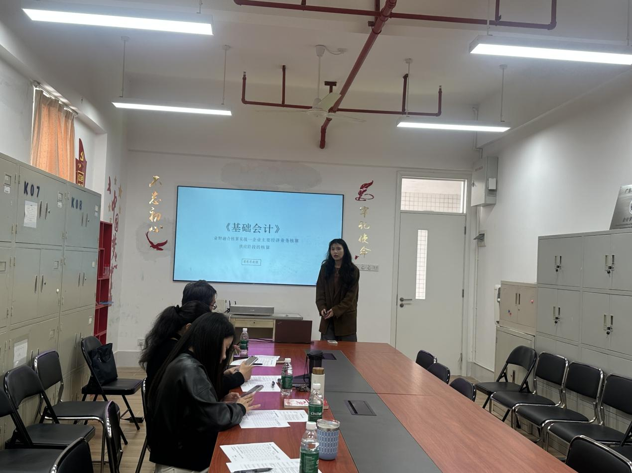 参赛课程覆盖会计学科核心与前沿领域,体现了学院课程体系的广度与深度。杨梓妮教师团队与韦琳教师团队均聚焦《财务管理》,从不同视角呈现了课程设计的多样可能;詹闽教师团队的《基础会计》注重知识建构与思维引导;李勤教师团队的《成本会计》突出实务衔接与案例融合;黄越雅教师团队的《审计学》强调批判性思维培养;张曼姝教师团队的《物流会计》展现了学科交叉特色;李瑾教师团队的《内部审计》注重风险意识与实务能力并重;杨小阁教师团队的《资产评估》强化价值分析与实务操作;吴子涵教师团队的《个人理财规划》则贴近生活,注重应用能力培育。每一位教师的展示都凝聚了对教学的深刻思考,每一次创新汇报都闪烁着教改探索的智慧火花。