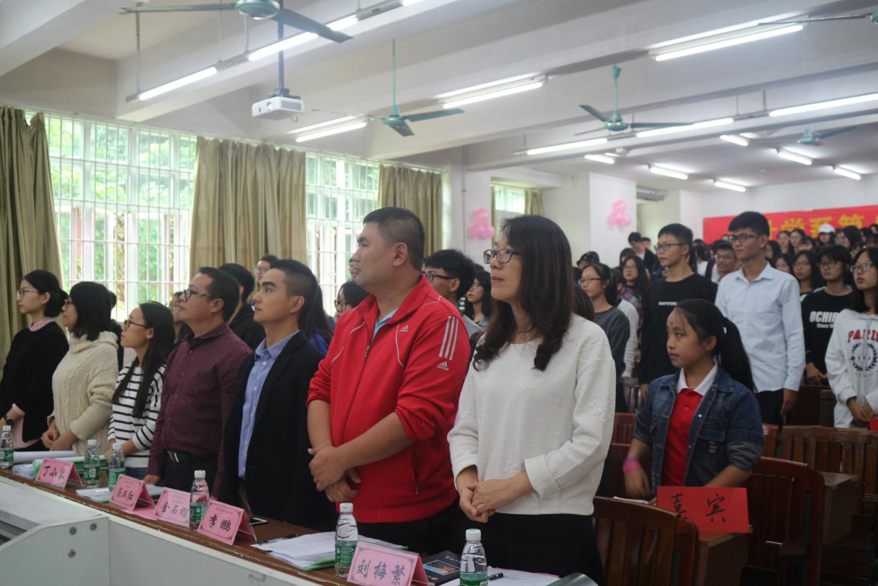 答辩会开始。全体起立,奏唱共青团团歌《光荣啊!中国共青团》,全体与会者表达对中国共青团崇高的敬意和美好的祝福。紧接着,主持人为大家介绍本次答辩会的评分细则。