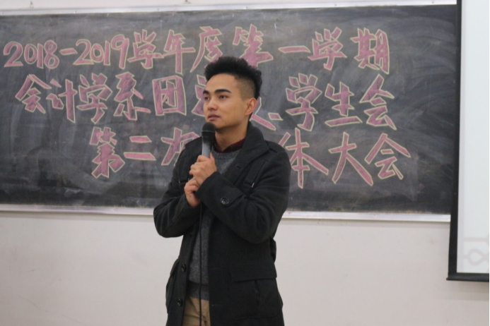 本网讯(学习部 黄瑞雪 资讯部 陈琳琳)2018年12月10日中午,2018-2019学年度第一学期会计学系团总支、学生会第二次全体大会在3107教室顺利举行。出席本次大会的有会计学系团总支书记、学生会指导老师金石榴老师以及第二十届会计学系团学的全体成员。