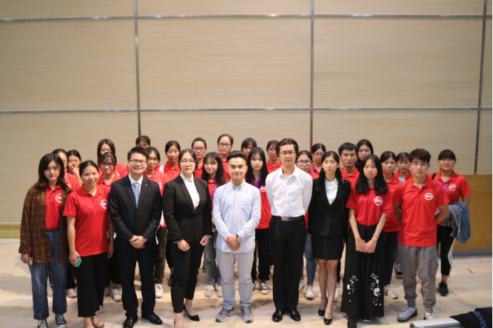 “优秀学生组织”评选答辩会到此结束,评委嘉宾和代表们上台合影留念。