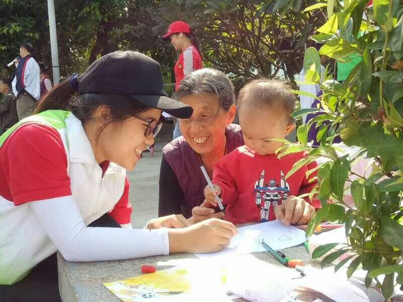 期间,志愿者们和小朋友、家长们一起踢毽子、跳绳、画画、玩老鹰抓小鸡等游戏,不仅提高了市民参与活动的热情,也让大家的周末变得更加的欢乐。志愿者们秉承绿色环保的理念,将小朋友们的废弃的画纸加以修饰制作纸风车,提高纸张的利用率,避免浪费。