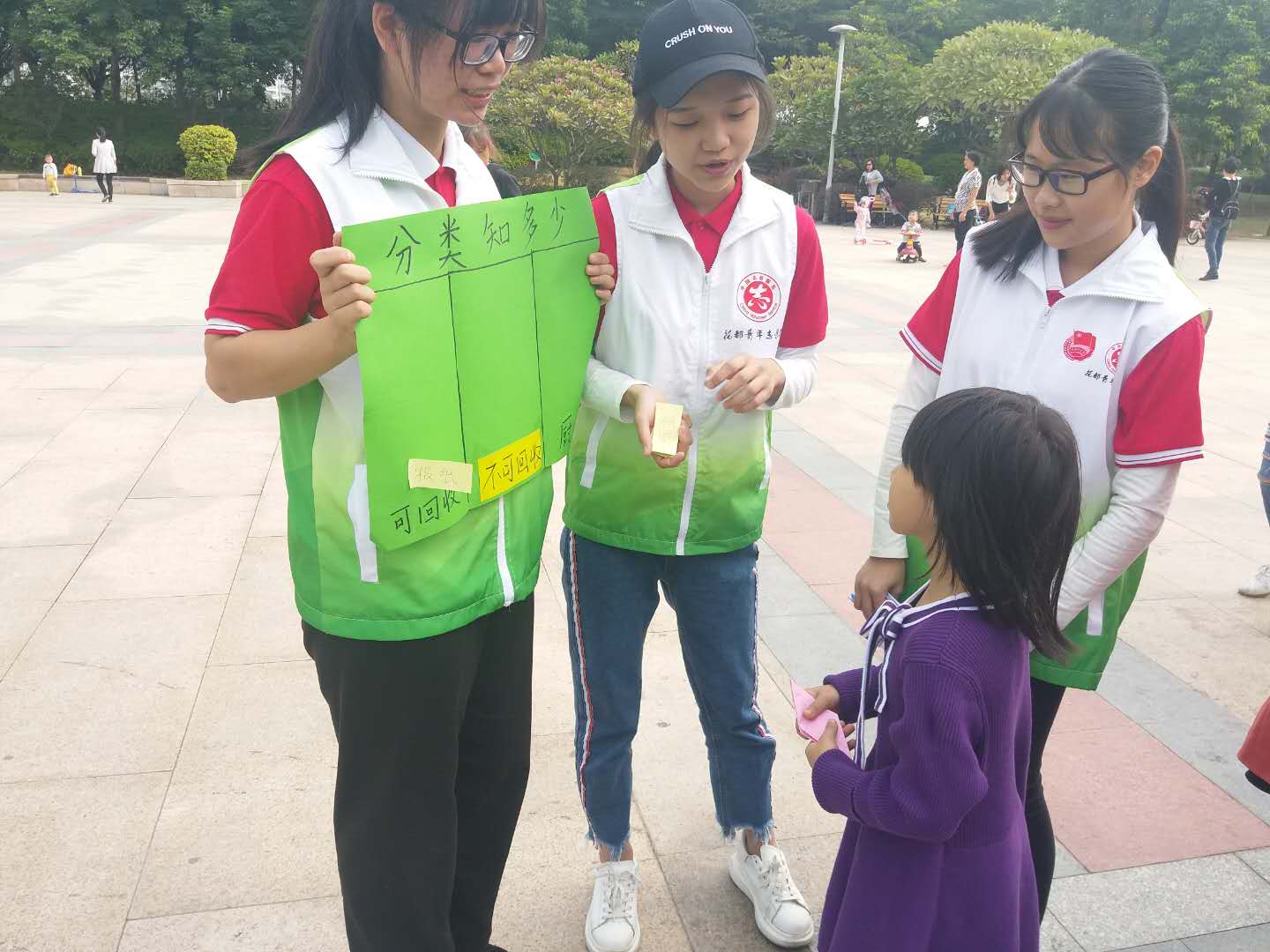 为了更好地向市民推广环保理念、传播绿色能量,提高社区居民的环保节约意识,志愿者们开展了“分类知多少”的知识问答活动,并借此与市民进行环保知识的交流。交流过程中,我们向市民宣传日常环保小知识和废物利用的小妙招,其中也了解到他们处理废弃物品的方式,无不体现出市民对废弃物品的高效利用,以及小朋友们的环保理念。