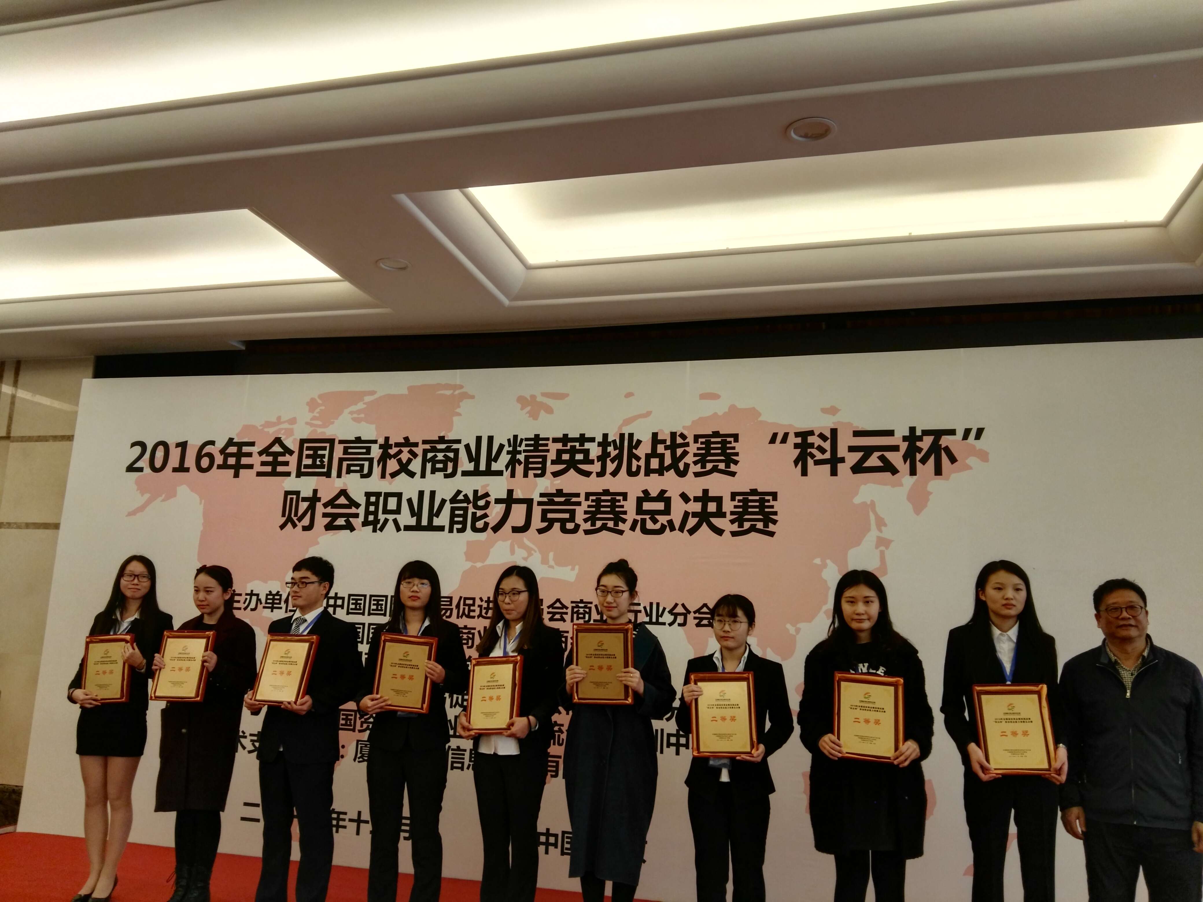 (本网讯:实践教学教研室 谭洪益)2016年全国高校商业精英挑战赛“科云杯”财会职业能力竞赛总决赛于12月2日至4日在北京举行。本次竞赛是由中国贸促会商业行业分会、中国国际商会商业行业商会、中国商业会计学会共同主办,中国贸促会商业行业分会和(国资委)商业国际交流合作培训中心共同承办,厦门科云信息科技有限公司技术支持的国家级商科教育学科竞赛活动。