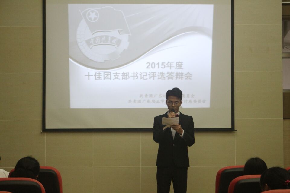 最后,评委老师对各个参评候选人的评选总成绩进行公布并宣布获奖结果。其中,我系团总支徐金芳凭着良好的表现和优异的成绩顺利通过答辩,获得广东培正学院2015年度“十佳团支部书记”荣誉称号。
