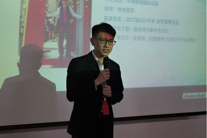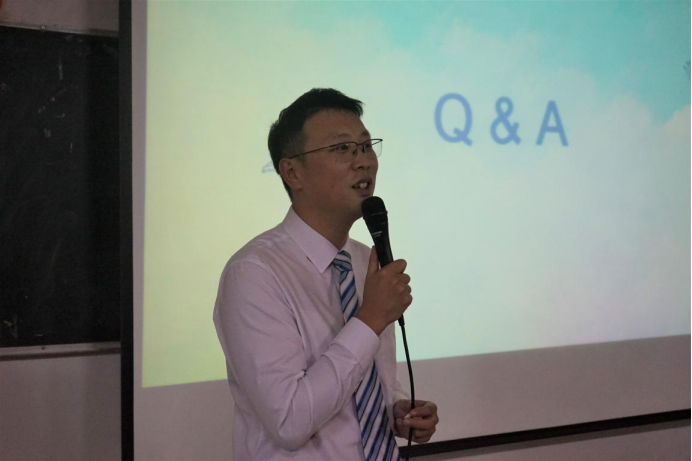 紧接着,我校校友,公司员工代表陈家凯上台分享在该公司的工作经历和感受,他鼓励同学们要明确职业发展目标和发展路径,并为目标的实现坚持和努力。之后的提问互动环节,现场气氛十分活跃,在座的同学积极提问,谢经理耐心地为其一一解答。
