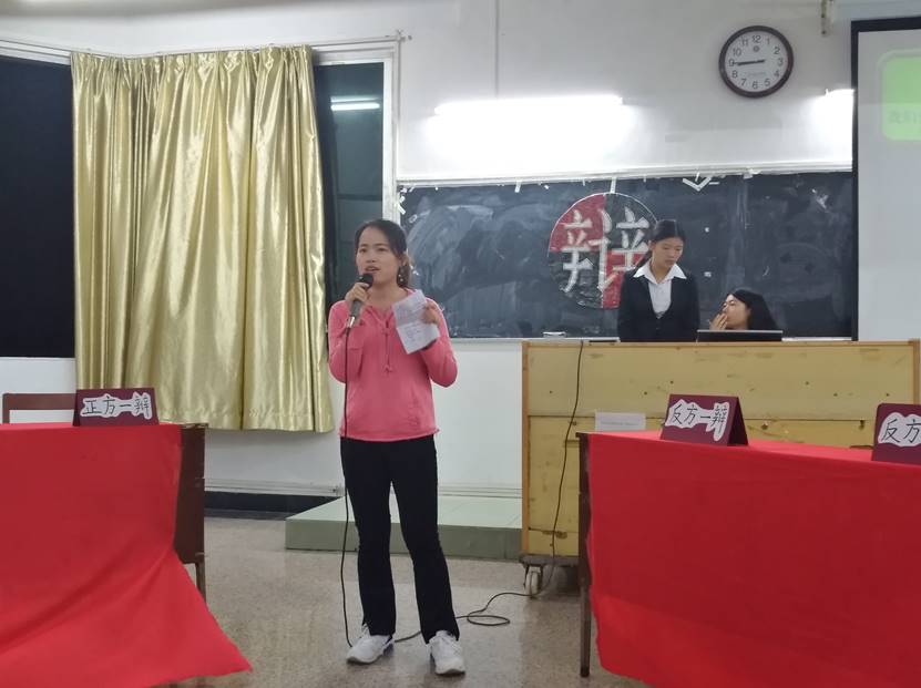 双方辩手入场后,主席宣布比赛正式开始。首先由正方一辩对其观点――我们更可能毁于我们热爱的事物进行理论陈词。正方认为,我们对待一些自己热爱的事物,即便知道它们对我们有坏处,却还是会因为沉溺于热爱而失去防范,最终走向毁灭。反方四辩则对此拋出旧社会重男轻女的观念向正方质询。