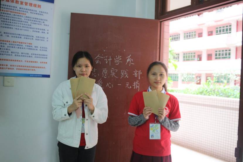 本网讯(学习部 王玉鑫 资讯部 吴泽娜)2017年11月20日中午,会计学系团总支志愿实践部组织了我系“爱心一元捐,温暖满校园”的活动,并收集了所筹集的捐款。