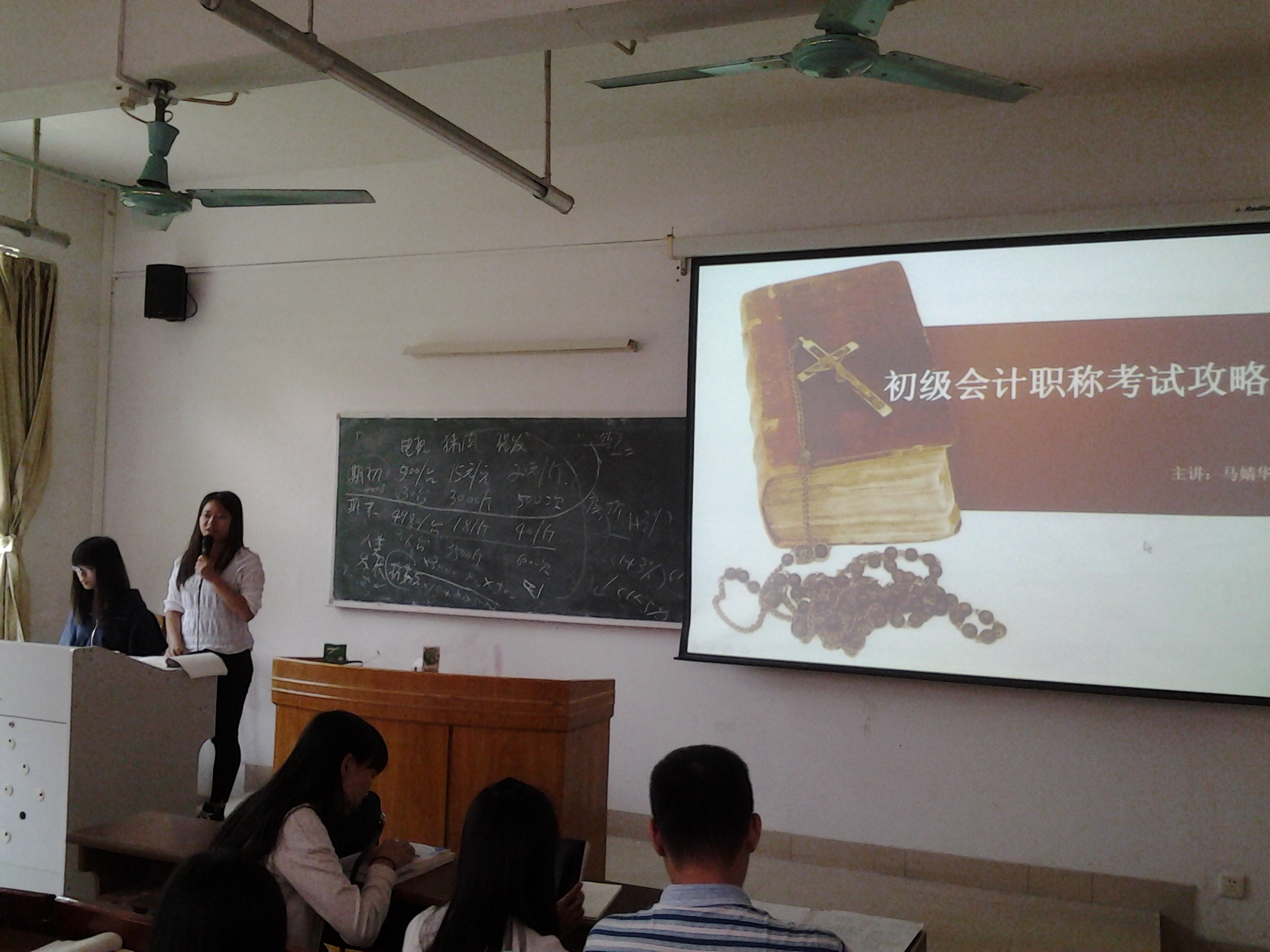 马靖华同学以其亲身经历经行现场讲述,主要围绕报名条件和备考经验两大主题向在场的同学讲解初级会计职称考试的全过程。期间,马靖华积极解答同学们的各种疑问。据悉,该班同学会计从业资格证考试通过率已达55%,且大部分同学已着手准备来年的初级会计职称考试。